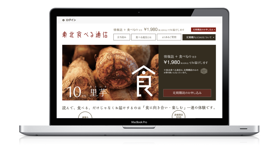 おいしい食べものをつくり続ける生産者にクローズアップし、特集記事(冊子)とともに彼らが収穫した食べものをセットでお届けする定期販売型のサービスです。